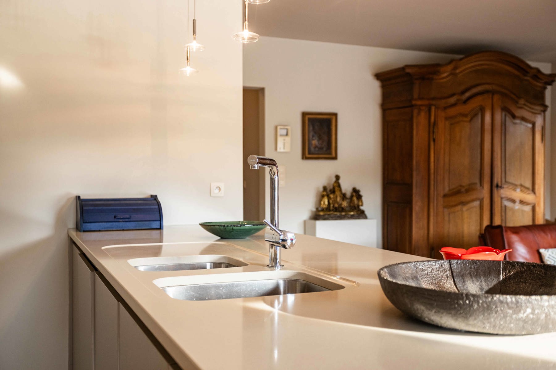 Dit ruime hoek appartement zorgt voor natuurlijk licht in alle kamers. Ook omvat het een uitnodigende en lichtrijke leefruimte met grote raampartijen die uitgeven op het riante terras – dé plek bij uitstek om in alle sereniteit te genieten van de omgeving. De volledig geïnstalleerde keuken is volledig voorzien en uitgerust met kwalitatieve toestellen en veel werk- en opbergruimte, perfect voor wie graag kookt.